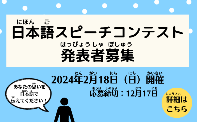 「日本語スピーチコンテスト」発表者を募集します。 ※募集は締め切りました。