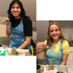 午後からは、書写山の麓にある書写の里・美術工芸館でコマの絵付け体験をしました。思い思いに色を付けていき、オリジナルのコマを作りました。