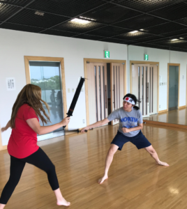 スポーツチャンバラに挑戦しました。専用の剣を使い、守りや攻めの練習をしました。汗を流して気持ちが良かったです。