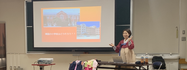 スライドを用いた講演で、様々な国の文化に触れ、国際理解を深めます。