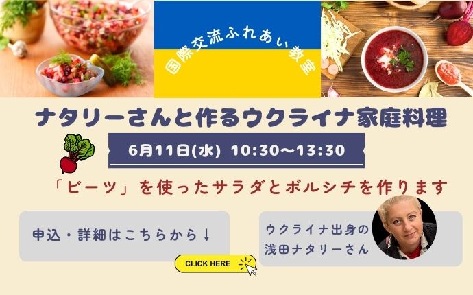 国際交流ふれあい教室「ナタリーさんと作るウクライナ家庭料理」をイーグレひめじで開催しました。