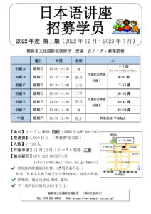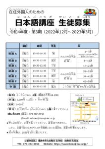 令和4年12月から第3期在住外国人のための日本語講座が始まります。