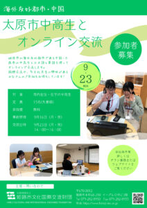 HOME > おしらせ > 太原市中高生とのオンライン交流会を開催します