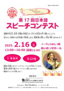 姫路市在住・在学・在勤の外国人が、日々の生活の中で感じたことや、伝えたい気持ちを日本語で発表します。 発表者の想いに耳を傾けませんか?