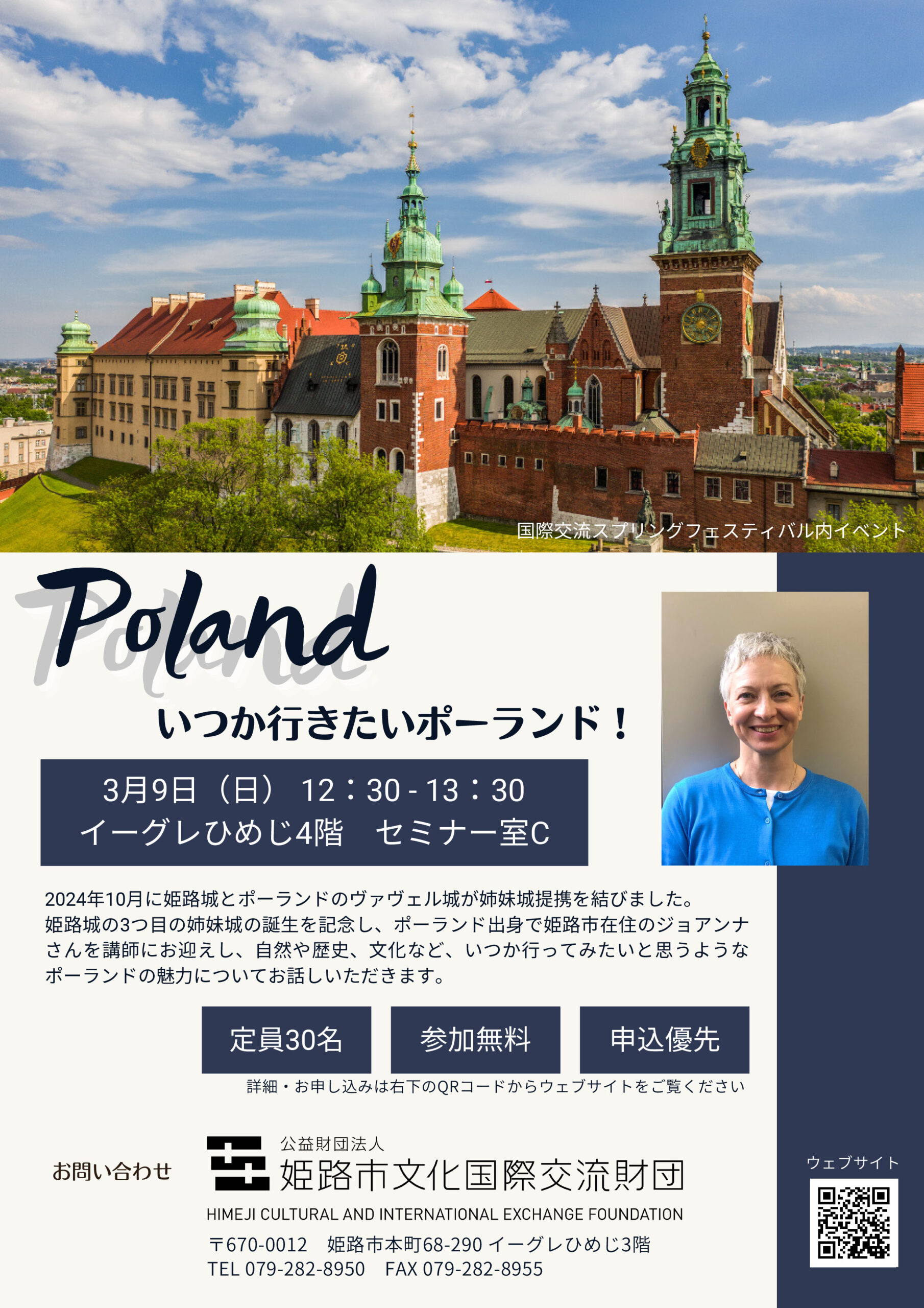 2024年10月に姫路城とポーランドのヴァヴェル城が姉妹城提携を結んだことを記念して、ポーランド出身で姫路在住の井筒ジョアンナさんを講師に招き、ポーランドの魅力を知る講座を開催します。