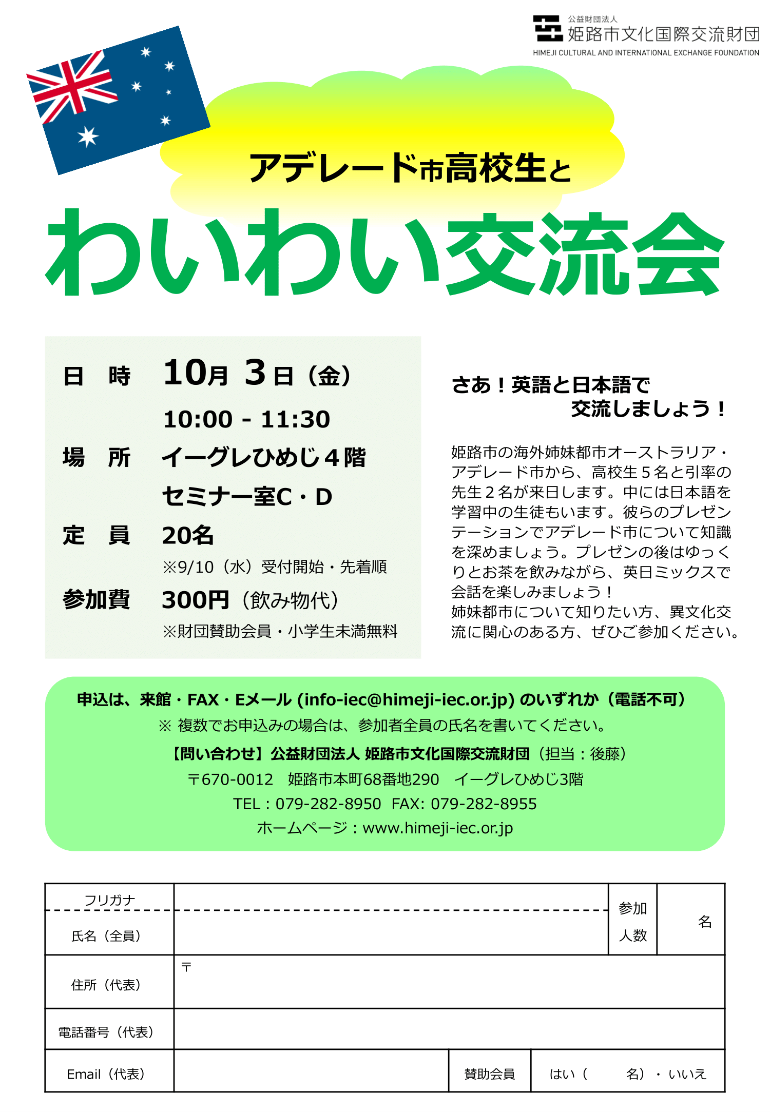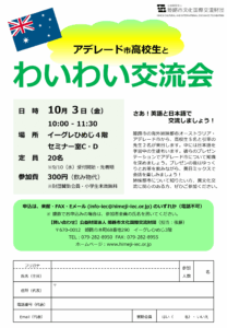HOME > おしらせ > アデレード市高校生と「わいわい交流会」を開催します