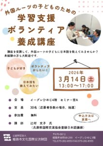 外国ルーツの子どもたちを取り巻く環境、必要とされている支援や具体的な支援方法などについて学び、外国ルーツの子どもに日本語を教えてみませんか?