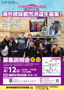海外姉妹都市派遣生募集説明会を以下の通り行います。