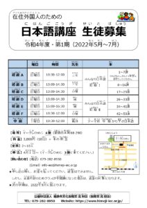令和4年5月から第1期在住外国人のための日本語講座が始まります。