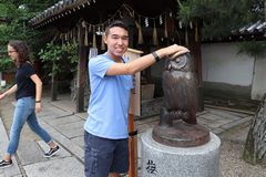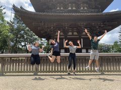 興福寺の五重塔の前でジャンプ!バッチリ決まってます。