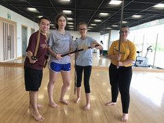 その後はスポンジ素材でできた剣を使い、守りと攻めの練習。