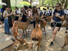 奈良公園の鹿の熱烈歓迎ぶりにビックリ!の面々です。