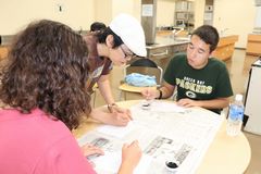 先生の指導の下、竹楊枝を筆にして線をかく練習からスタート!