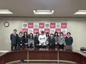 市長を表敬訪問しました。昌原市から姫路市長に、昌原市のプロ野球チームNSダイノスのユニフォームが贈られました。
