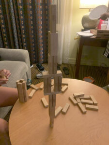 ジェンガで伏見稲荷の千本鳥居を再現しようとしたり、意味不明な建物を作ったりしてみんなで笑い合って楽しかったです。
