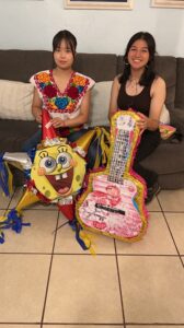 またメキシコ料理を食べた後はみんなでピニャータ(中にお菓子を入れたくす玉のようなもの)を叩いてお菓子をもらいました。