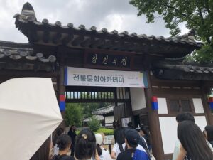午後は、韓国の伝統工芸体験と弓引き体験をしました。