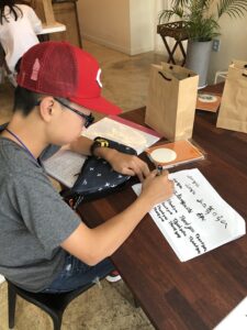 午前中は、グルゴムカリグラフィーという場所でハングル書きの体験をしました。