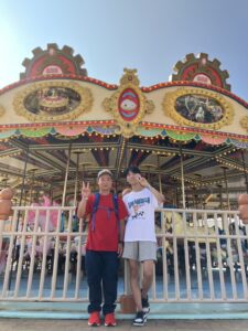 韓国では絶叫系の乗り物に乗れる子が多いみたいで「次はこれ!」とたくさん乗っていて、私も初めてジェットコースターの最前列を体験しました(笑)楽しかったです。