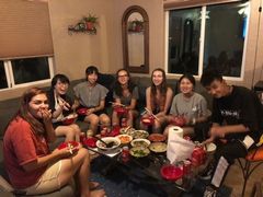 今日はアイルランドの派遣生たちが帰国する予定だったので、朝に空港まで見送りに行きました。みんな最初から涙を流していて、自分も思わずもらい泣きをしてしまいました。自分たちが帰る日のことを考えると寂しくなりました。 その後、アイスクリームを食べに行きました。アイスクリームにオレオがたくさん入っていて、おいしかったです。 夜は日本人派遣生、ホストファミリーたち、過去の姫路からの派遣生のホストファミリーと夕食を食べました。 バイキング形式でお寿司もありました。久しぶりに和食を食べましたが、やっぱり味は少し違うなと感じました。みんなとたくさん話もできて楽しかったです。