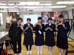 今日は学校登校日です。Year 9(日本の中3)、Year 10・11(高1・高2)の日本語の授業で日本と姫路の紹介プレゼンをし、パワーポイントでの説明、空手の披露、書道体験、最後に折り紙を作りました。折り紙では手裏剣を作りました。折り方をどう説明したら良いのかわからず手間取りましたが、完成したらみんな嬉しそうでした。