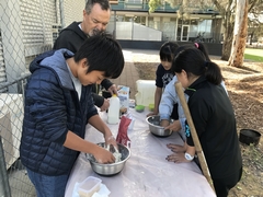 この日は3つの授業に参加しました。始めは英語の授業で、日本語が一切ない授業は初めてで新鮮でした。Recessの後は調理実習で、ひき肉をパイ生地で巻いたソーセージロールと、チョコカップケーキを作りました。ブラックウッド高校のみんなは本当に手際が良く、どちらもおいしかったです。昼食の後はキャンプファイアーをしました。そこで小麦粉と牛乳を混ぜたダンパーというパンを 作りました。ダンパーはかなりボリュームがあり、バターとジャムを塗って紅茶と一緒においしく頂きました。