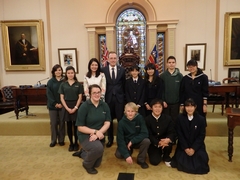 昨日から雨が降り、今日も雨の予報だったのですが、晴れになって良かったです。午前中はホスト生徒と一緒に市長表敬に行きました。市長はとてもフレンドリーな方で、たくさん記念品をいただきました。また、議員の方の椅子に座るなど、貴重な体験ができました。午後にはセントラルマーケットという大きな市場へ。平日にもかかわらず、たくさんの人でにぎわっていました。