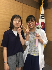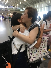 朝早くに家を出て、姫路駅で両親と別れ、関西空港へ向かいました。 離陸後、1時間半で釜山の金海空港に着き、40分ほどバスに乗ってホストファミリーの待つ昌原市庁に向かいました。とても楽しみにしていたけれど、半分ドキドキや不安がありました。でも、対面式でペア生徒のスジョンと会ったとたん、不安な気持ちは全部なくなりました!