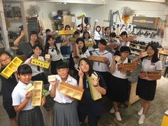 午後は、工芸体験でミニ3段ボックスとスマートフォン立てを作りました。3段ボックスは、作りやすいように木材に切りこみや穴が開けてありましたが、ボンドでつなぎ合わせる工程がちょっと難しかったです。絵の具で仕上げにペイントした後、スタンプなどで絵付けをしました。スマートフォン立ては、やすりをかけてきれいにし た後、自分の名前や好きな文字をレーザーの機械で焼き付けてもらいました。日本では見たことのない機械だったので驚きました 。